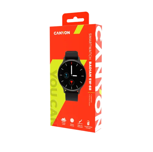 This watch is a rare combo for sporty people! Look, we have 22 sports modes, from regular walks to baseball and yoga. Statistically speaking, there is a high chance that your favorite activity will be among the included modes. If you are an avid swimmer, our watch is protected by the IP68 standard. It will monitor your heart rate, your sleep, and remind you to drink water. To keep you comfy, we used hypoallergenic silicone for the strap. The watch is highly customizable and allows you to receive notifications and control media playback. All that without the nuisance of charging it every night — our SW-68 model lasts up to 6 days in active mode. Please note that we care about your privacy — the Canyon smartwatch follows the GDPR standard and protects your personal data.